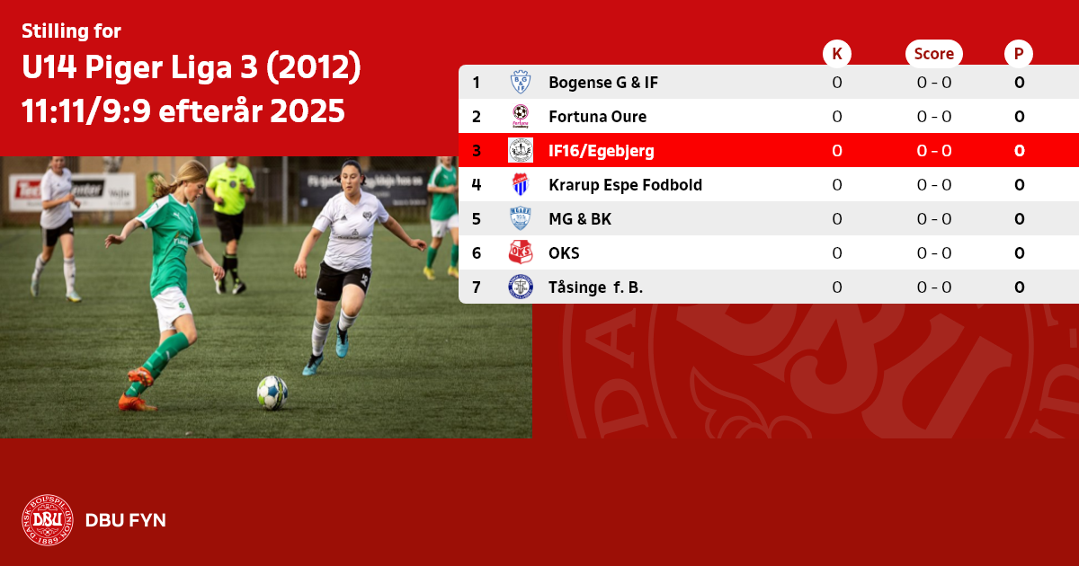 U14 Piger Liga 3 (2012) 11:11/9:9 efterår 2025