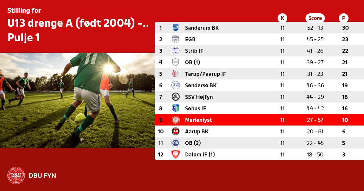 U13 drenge A (født 2004) - Efterår 2016, Pulje 1