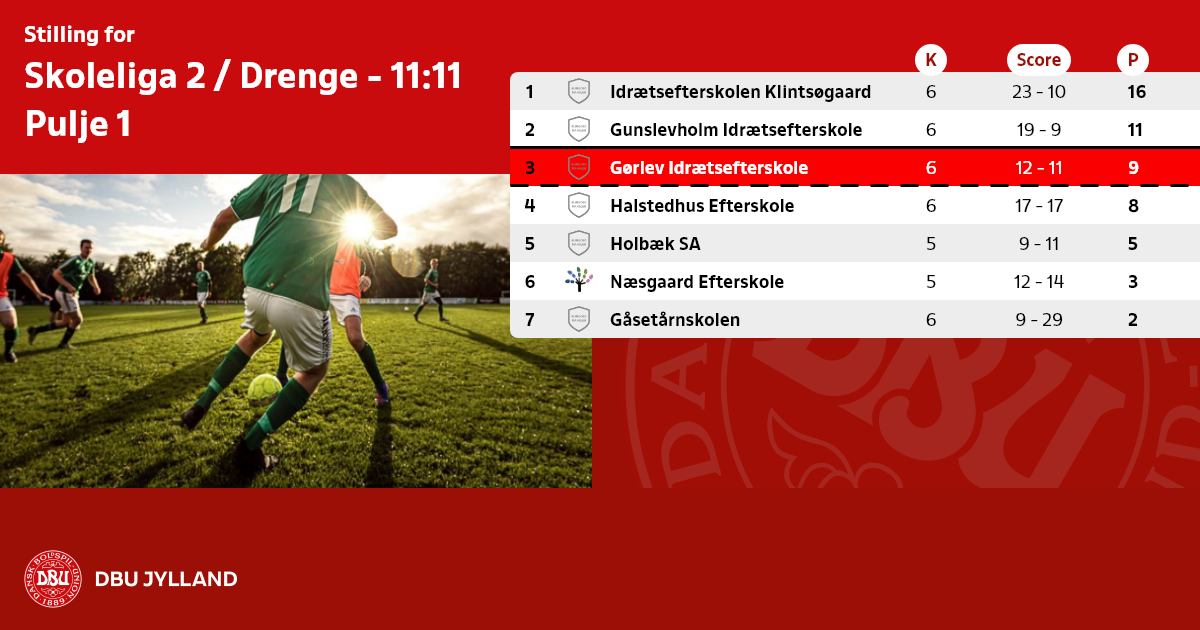 Skoleliga 2 / Drenge - 11:11, Pulje 1