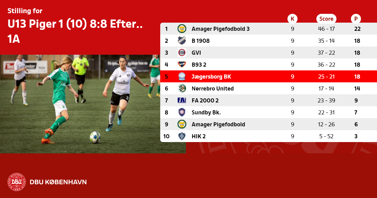 U13 Piger 1 (10) 8:8 Efterår - Dommerløs række, 1A