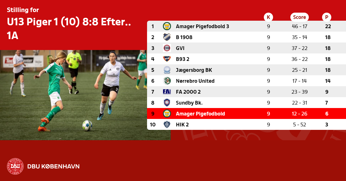 U13 Piger 1 (10) 8:8 Efterår - Dommerløs række, 1A