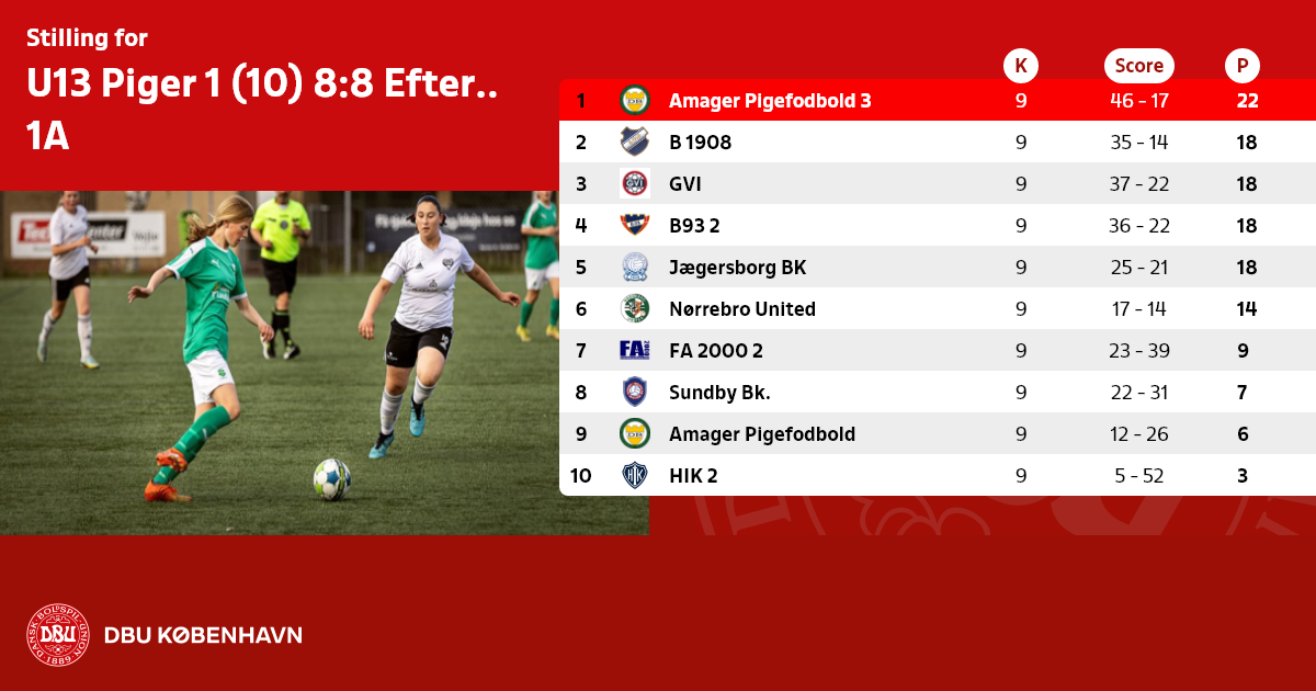 U13 Piger 1 (10) 8:8 Efterår - Dommerløs række, 1A