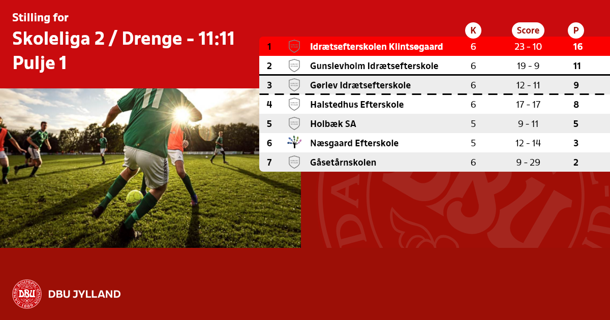 Skoleliga 2 / Drenge - 11:11, Pulje 1