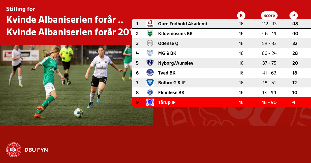Kvalifikationskampen mellem nr. 7 i Kvinde Albaniserien og nr. 2 i Kvinde Serie 1 spilles onsdag den 27. juni kl. 18.30. Kampen afvikles i Ringe.