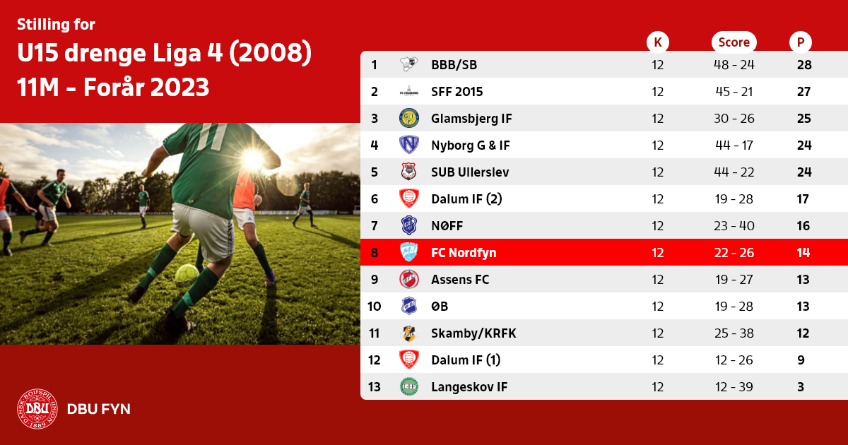 U15 drenge Liga 4 (2008) 11M - Forår 2023