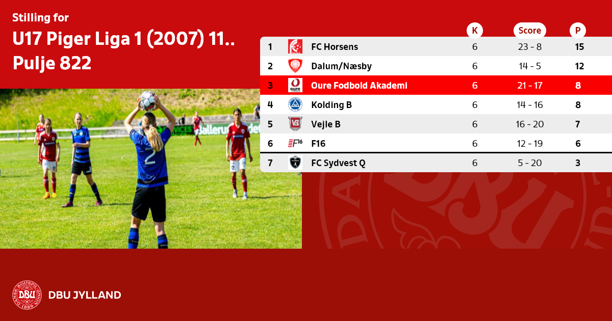 U17 Piger Liga 1 (2007) 11:11 - efterår 2023 ombr, Pulje 822