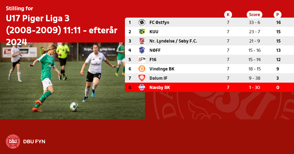 U17 Piger Liga 3 (2008-2009) 11:11 - efterår 2024