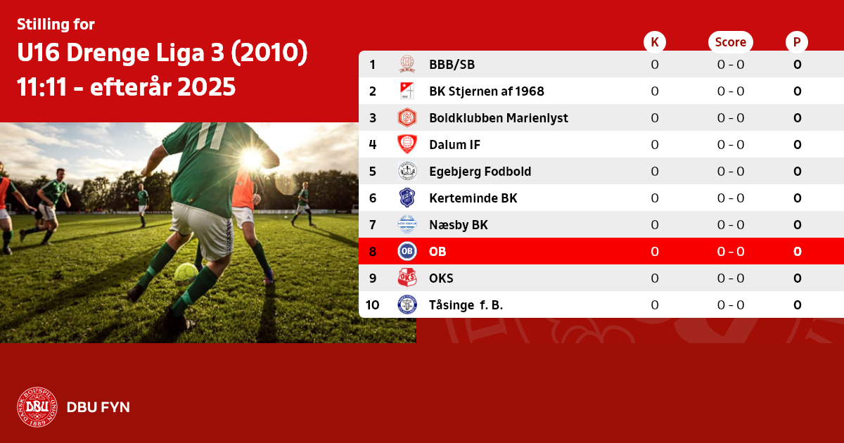 U16 Drenge Liga 3 (2010) 11:11 - efterår 2025