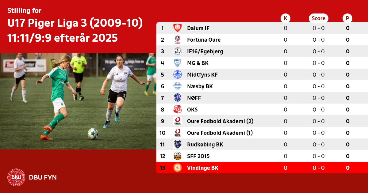 U17 Piger Liga 3 (2009-10) 11:11/9:9 efterår 2025