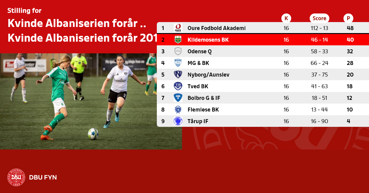 Kvalifikationskampen mellem nr. 7 i Kvinde Albaniserien og nr. 2 i Kvinde Serie 1 spilles onsdag den 27. juni kl. 18.30. Kampen afvikles i Ringe.
